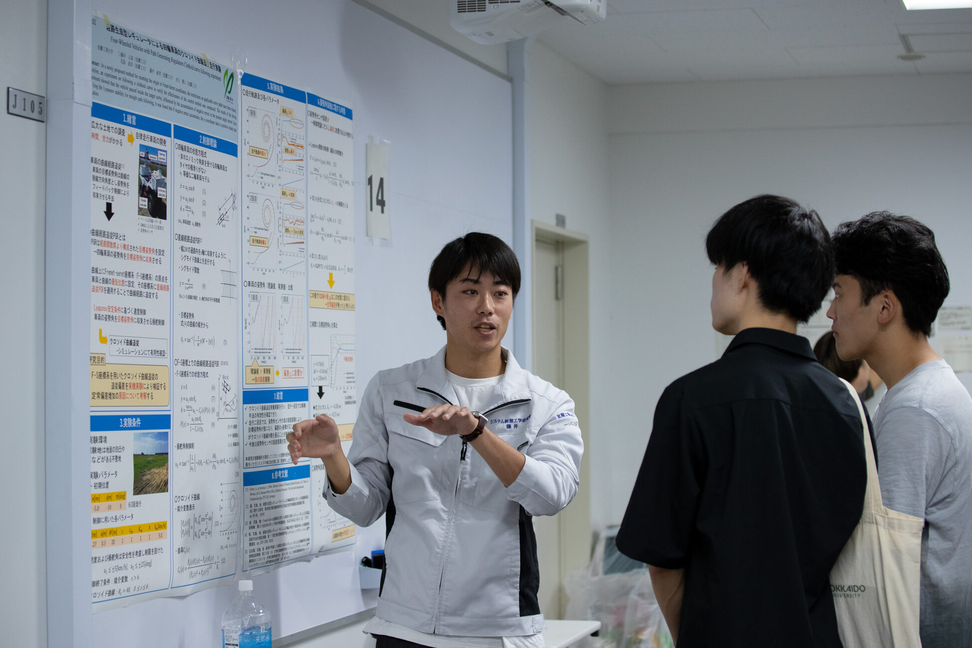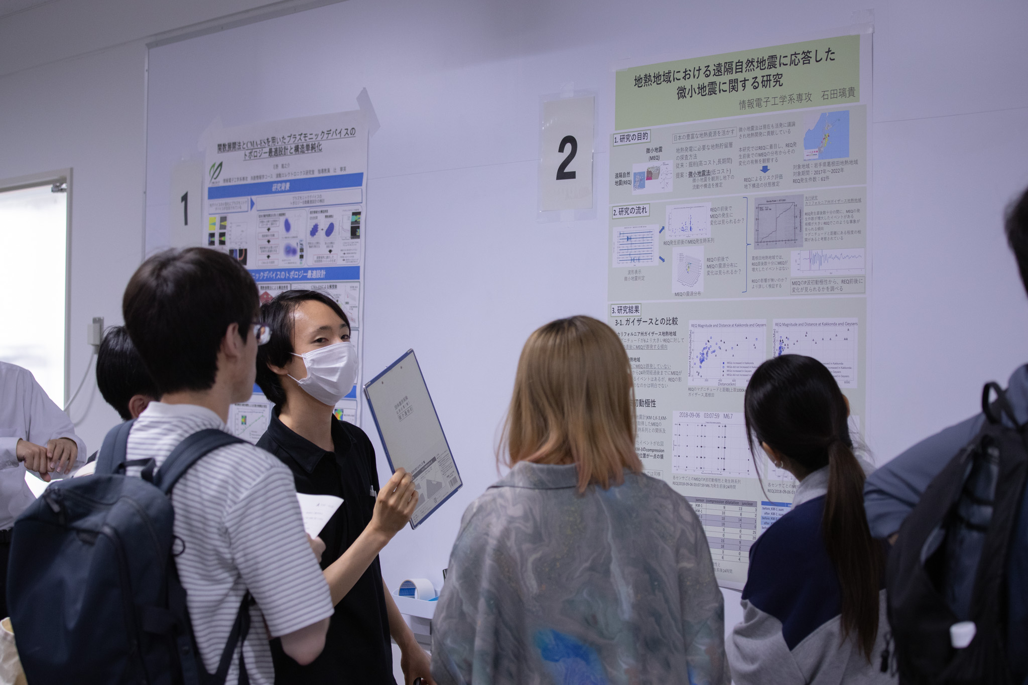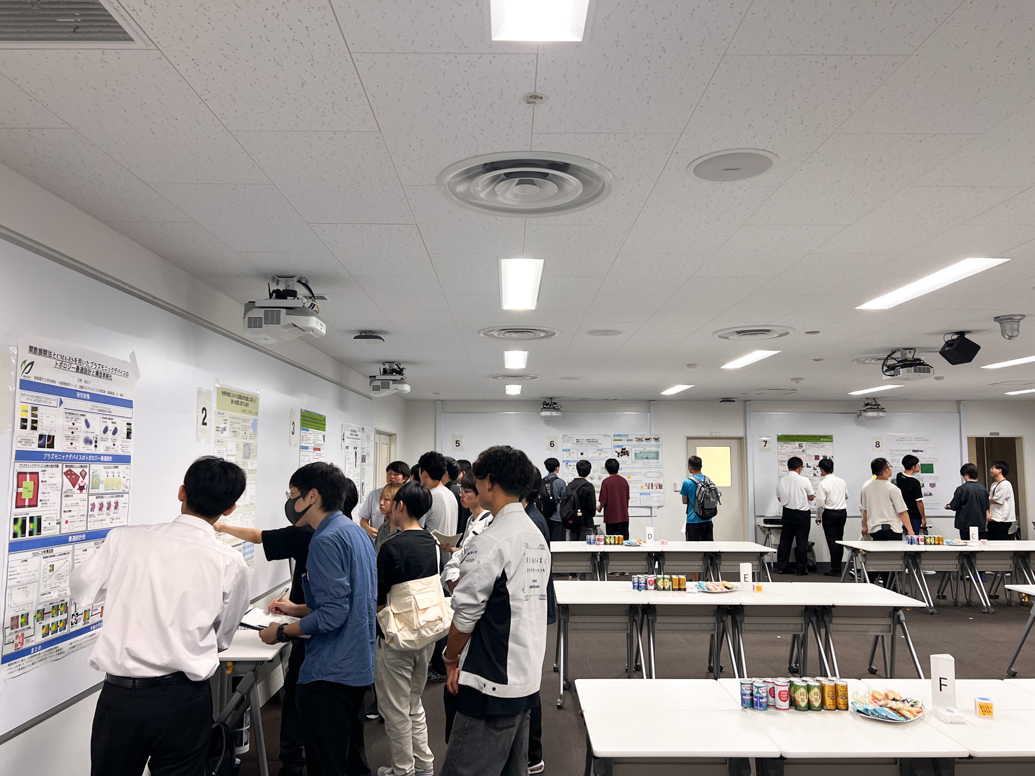 当日は、M2年生を中心に、自身の研究内容をポスター形式で発表。聴講者は熱心に耳を傾け、活発な質疑応答が行われました。