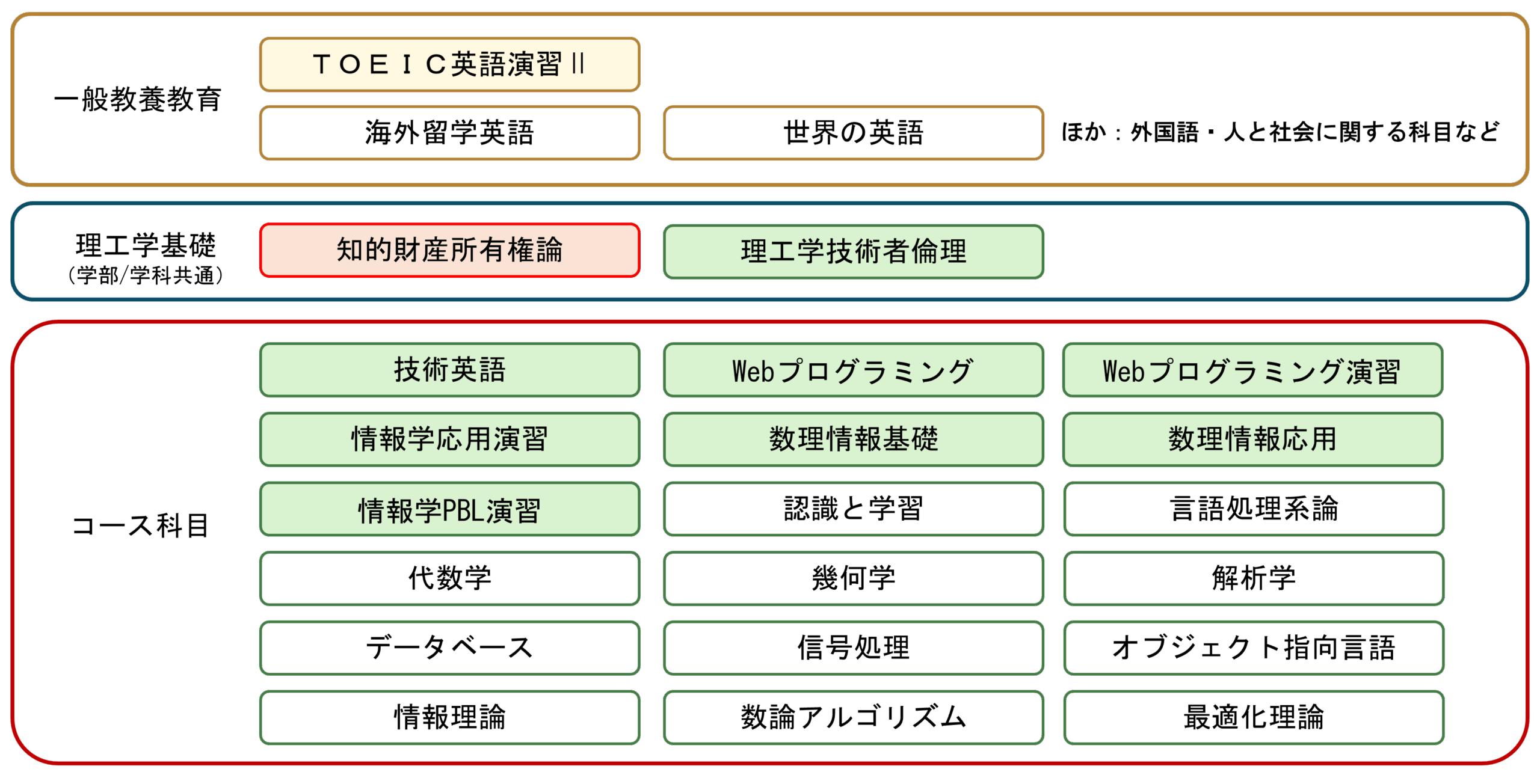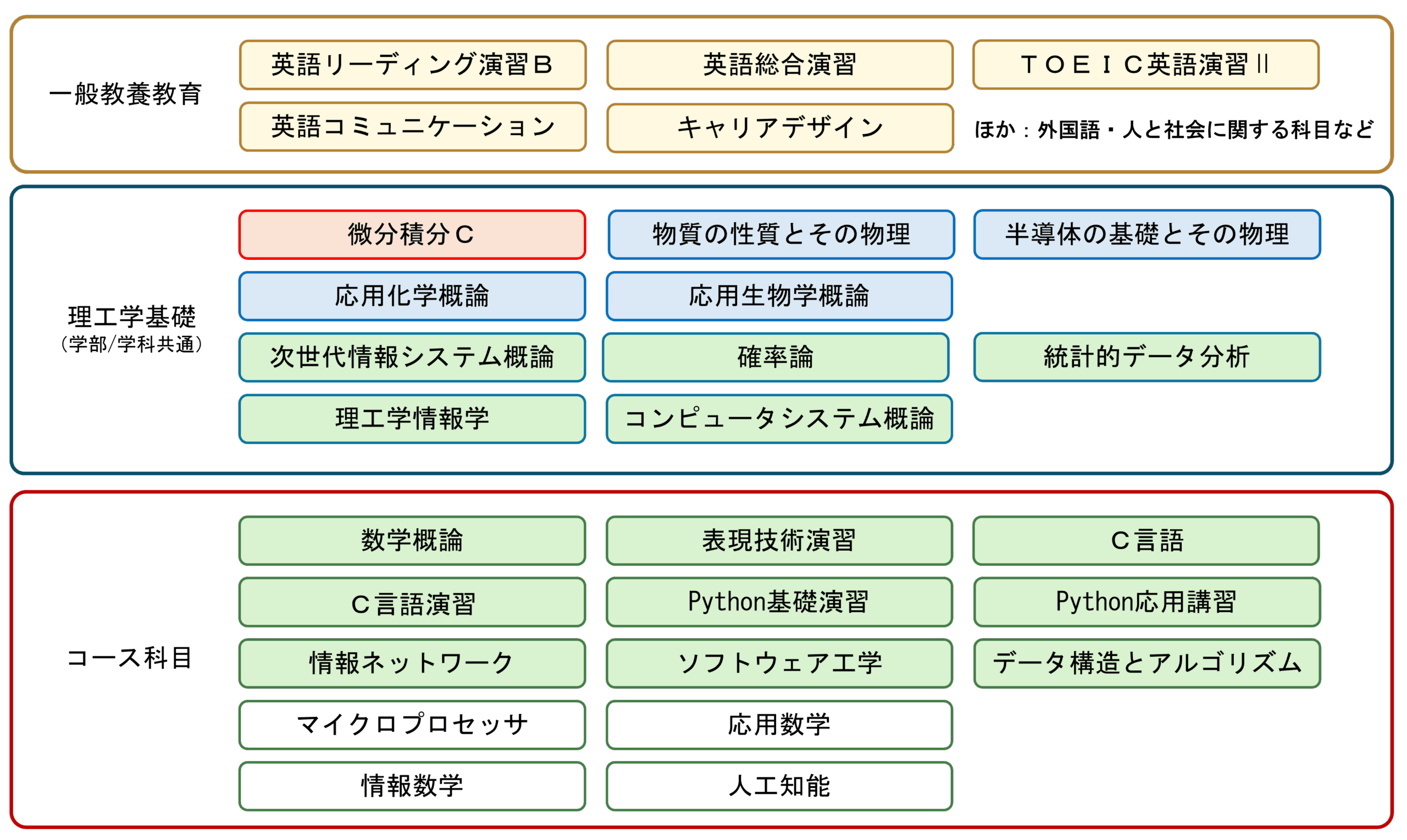コースの専門科目を中心に、より深い学びを追求し活用するために、当該分野に関わる専門知識を広く修得するとともに、
