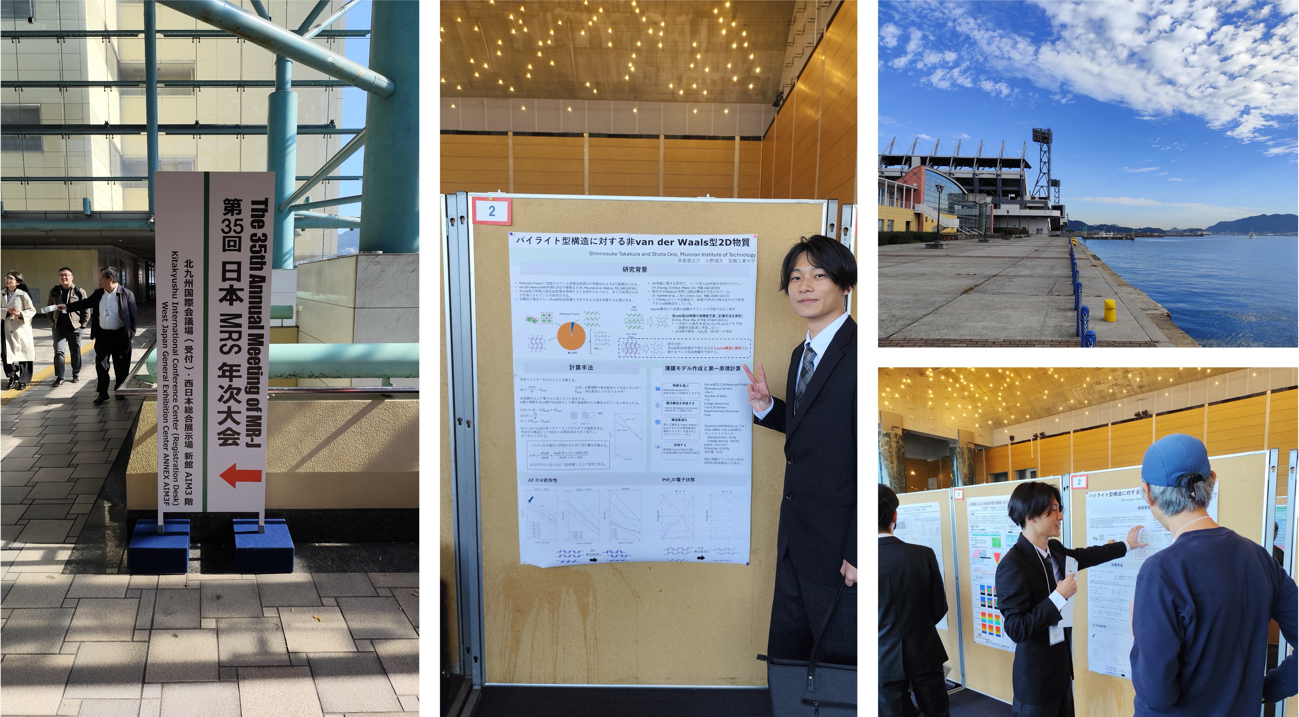 2025/11/10:日本MRS年次大会(北九州 小倉)でポスター&口頭発表しました。 ポスター発表では、B4の高倉君が2次元物質予測の最新の研究成果を紹介しました。 口頭発表では、小野がPhysical Review B誌から出版された論文内容を紹介しました。 論文リンク[PRB]