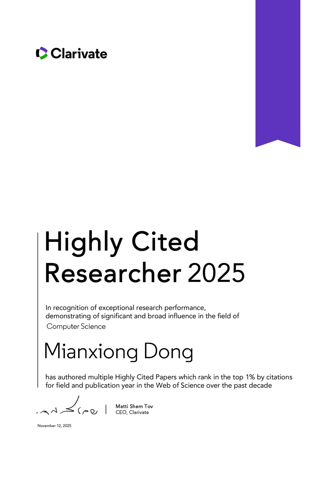 I had been named by Clarivate Analytics in the list of "Highly Cited Researchers 2025 (Computer Science)".
