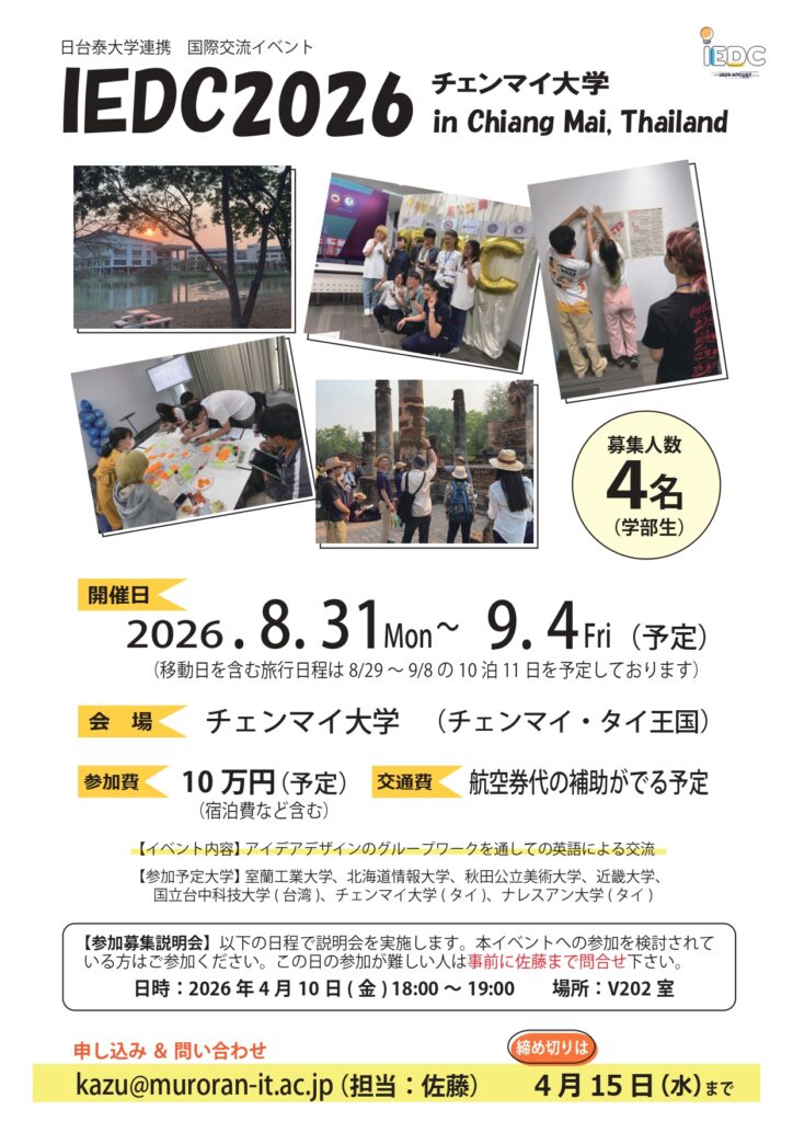 内容:アイデアデザインのグループワークを通しての英語による交流など