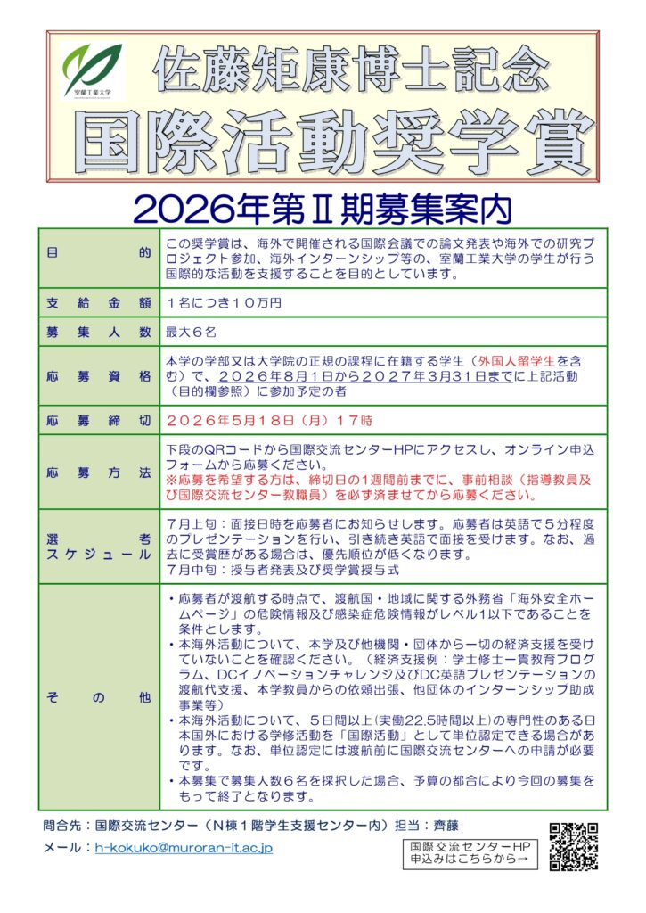2026年第Ⅱ期・佐藤矩康博士記念国際活動奨学賞の募集について