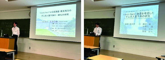 東北大学(仙台)で土木学会年次学術講演会が開催され,M2の渡辺修君が「Elastic Netに融雪を考慮したダム流入量予測の研究」,M1の鈴木拓真君が「Elastic Net による北海道・東北地方のダム流入量予測の一般化の研究」というタイトルで発表しました。大変ご苦労様でした。