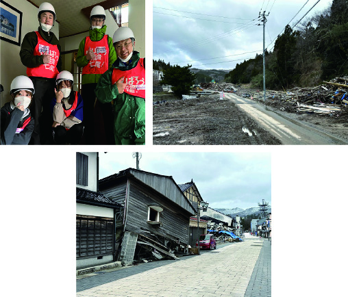 ボランティアに続き,翌3/3(月)には富山県立大の先生にお世話になり,一緒に輪島方面の被災状況を見学してきました。土砂災害,建物の倒壊,合わせて昨年夏の河川氾濫の現場など甚大な被害かつ地震と水害という複合災害の悲惨さを思い知りました。また,輪島高校にもお邪魔し,ちょうど卒業式で慌ただしい中にも拘わらず校長先生からは貴重なお話を聞くことができました。校舎自体も損傷しており,段差や床版の傾斜,基礎が沈下するなど深刻なダメージがあるようです。地震直後に比べ現地に関する報道は減っていますが,復旧までには長い道のりが必要で,息の長い支援が必要であることを痛感しました。