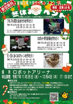 12月17日(土)に室工大サイエンススクール「コンピュータ制御クリスマスツリーの作製」が開催されます