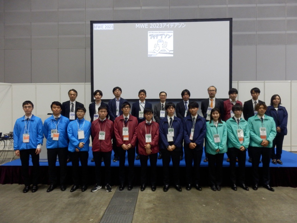 2023年11月29日から12月1日にパシフィコ横浜で開催された電子情報通信学会主催のMWE2023アイデアソンに,本研究室から内田,木谷,松﨑が参加しました.アイデアソンとは,"アイデア"と"マラソン"を掛け合わせた造語で,特定のテーマについて自由に話し合い,アイデアを出し合う教育プログラムです.他大学からの参加者と2〜3名からなるグループを組み,「あったら便利,ありそうでない,新技術が開発されたらこんなことができる」といった斬新なアイデアを生み出し,最終日に各グループが発表を行い,その優劣を競います.今回は,SDGs(持続可能な開発目標)の17目標のうちの1つを解決するために,マイクロ波技術を活用した新たな商品やサービスのアイデアを創出することがテーマでした.各参加者は,初めにアイスブレイクを兼ねたディスカッションを行い,大まかな方針を決定した後,マイクロウェーブ展に展示されていた最新の製品や技術を各出展ブースで見学しました.出展企業ブースでは,企業の製品担当者が学生に対しても対等に対応してくださり,意見交換や質問を通じて多くの助言を得ることができました.その他,アイデアソンWG委員の方々にも,親身に相談に乗っていただきました. その結果,木谷が所属するグループは過疎地域の医療設備問題を解決するためのバイタルセンサのアイデアを提案し,これをSDGsの目標3である「 すべての人に健康と福祉を」に関連付けた点が評価され,「優秀アイデア創出賞」を受賞しました.